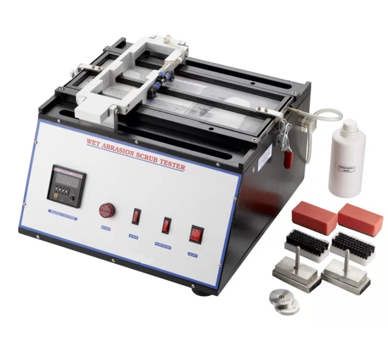 Wet Scrub Abrasion Tester is used to test the resistance of coatings by scrubbing and washing through nylon brush or sponge brush with a specific load.